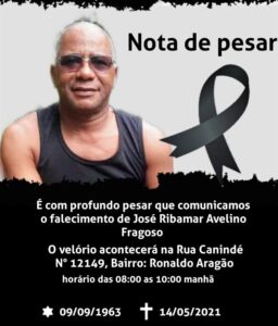 É com imenso pesar que informamos o falecimento do companheiro José Ribamar Avelino Fragoso, que faleceu nesta sexta-feira (14), mais uma vítima do COVID 19, funcionário da Empresa de vigilância Impactual. Com 57 anos, deixa família e amigos.